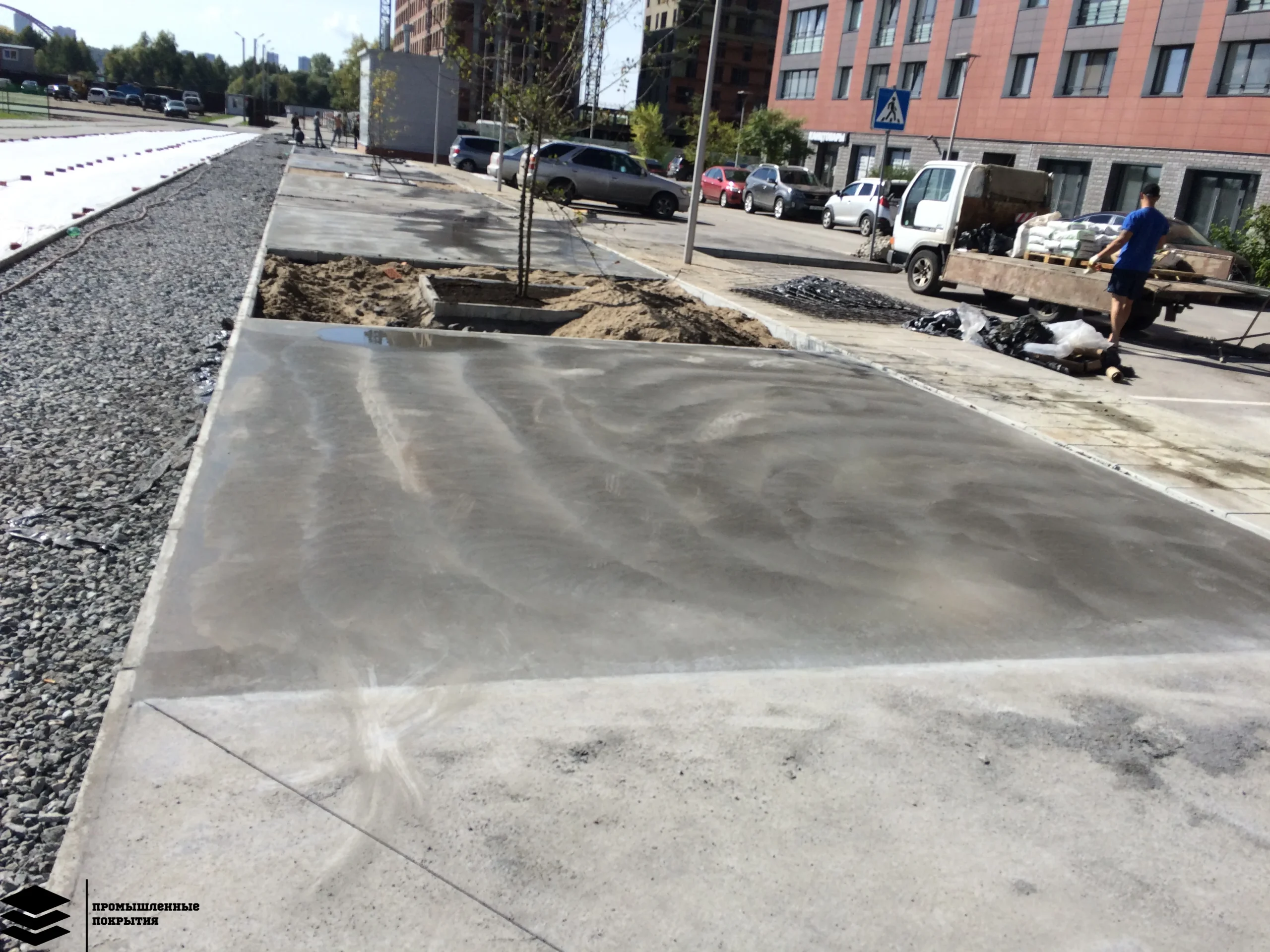 Благоустройство улицы, привлекательный бетон в строящемся городе-парк «Ясный берег». Главная задача — скорость ввода в эксплуатацию. Благоустройство территории на долгие годы.